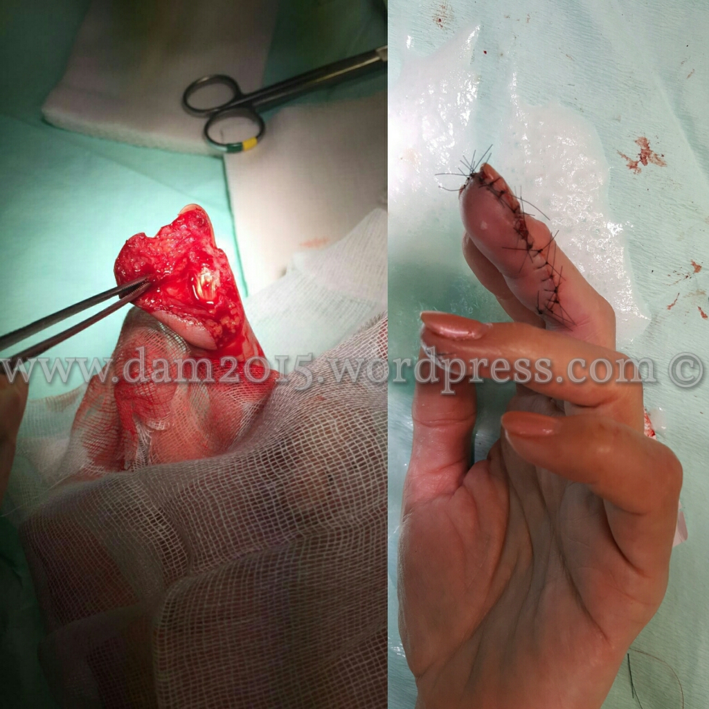 Caduta accidentale in strada. Subamputazione traumatica III dito mano sinsitra.